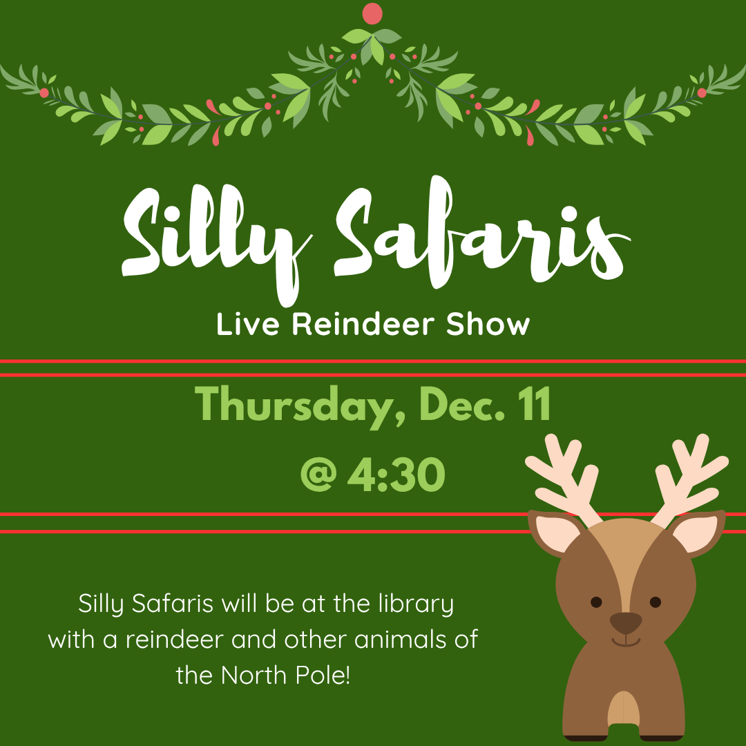 Join us on December 11th at 4:30 for a Live Reindeer Show presented by Silly Safaris!